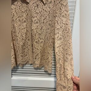 L’Agence Jenica Biscuit Beige Lace Long Sleeve Collared Blouse Size XL