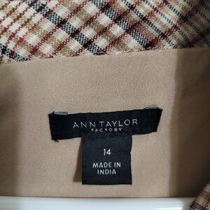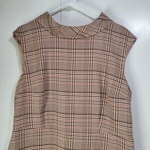 Ann Taylor Factory Plaid Sleeveless Lined Dress Women's SZ 14 Brown