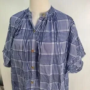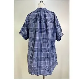Never A Wallflower Elastic Sleeve Dress Navy Blue Plaid Printed Cotton Mini