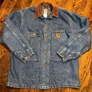 XL 90s Carhartt Denim Blanket Lined Chore Coat