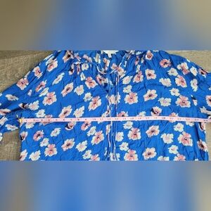 Lucky Brand Cold Shoulder Peasant Top Women's 2X Blue & Pink Floral Flowy Tunic