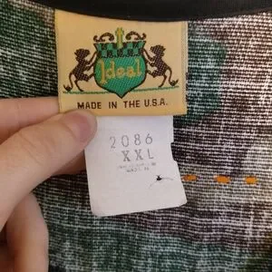 XXL vintage camouflage vest with handmade "Trans Rights" and "Silence=Death" patches sewn on with neon orange thread.