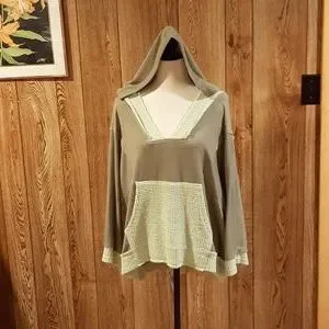 🥑POL Hooded Brown and Green Mixed-Fabric Top (L)🥑