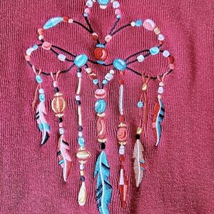 The EMBROIDERY on this is AMAZING!! Excellent condition. Front pockets. See photos for actual measurements.