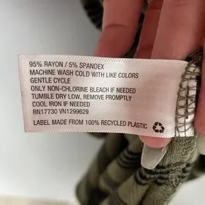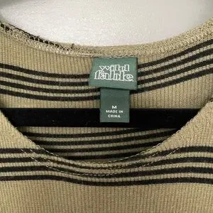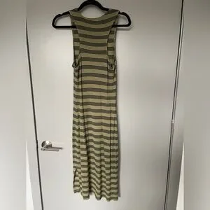 In good preowned condition, this green and black striped dress from Wild Fable (Target) is really lightweight and great for summer. It is a midi length dress – approximately 46 inches from the top of the shoulder to the bottom of the dress. It is approximately 15 inches from armpit to armpit, but the fabric does have some stretch to it.