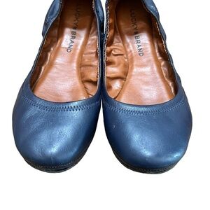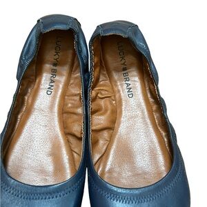 Lucky Brand Emmie 2 sz 7.5 womens ballet flat. Blue leather, very minor wear as shown in pic, not visible when worn.
