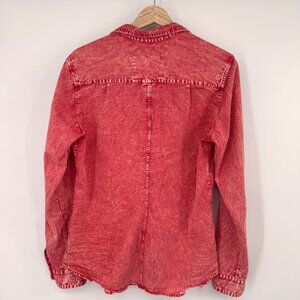 Frank & Eileen orange distressed denim shirt Long Sleeve Size Large womens
