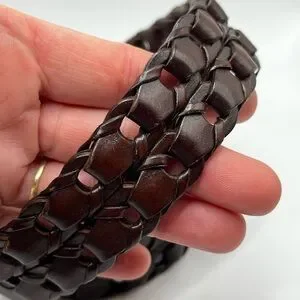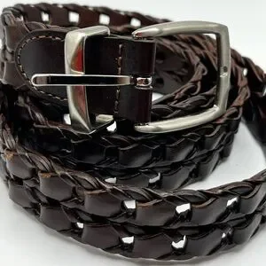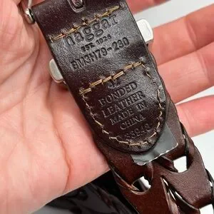 Haggar dark brown chain link vintage leather belt woven western unisex boho #8
