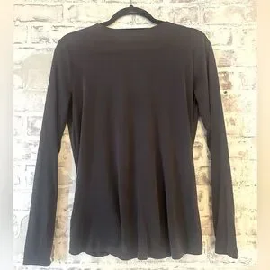 Long sleeve drapey modal blouse featuring a sexy plunge deep -V neckline with cut out straps. Super sexy top without being too much. Perfect for date night. Can be worn alone or also looks great with a black bralette or deep Y necklace.