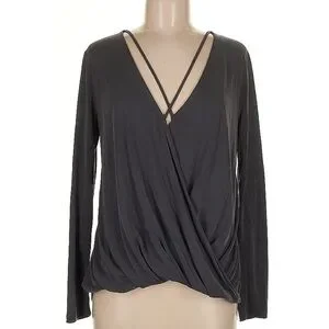 Lush | Long Sleeve Deep V Blouse in Gray
