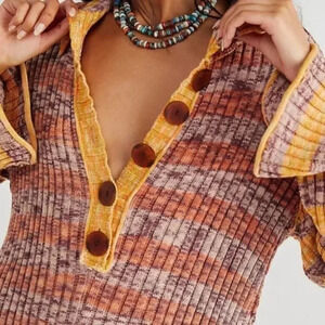 Free People Wendy Ribbed Sweater Romper Knit Stripes Long Sleeve