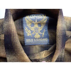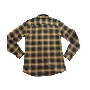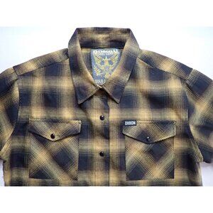 Dixxon Flannel Gold Standard Black Yellow Plaid Pearl Snap Button Womens L Biker