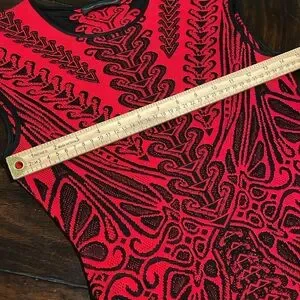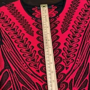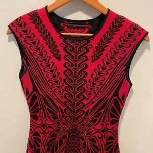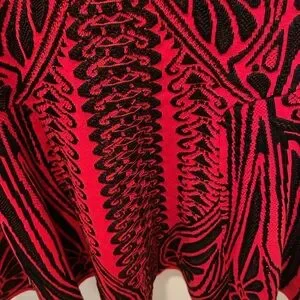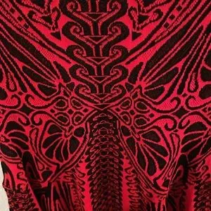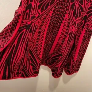 This stunning red and black dress features an intricate pattern, perfect for making a bold statement. Ideal for any occasion, it combines style and comfort effortlessly.