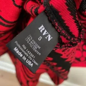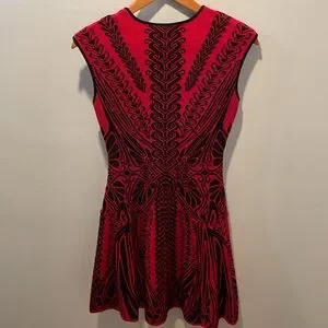 RVN Red and Black Abstract Fit and Flare Dress, Size Small