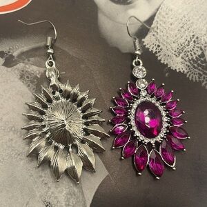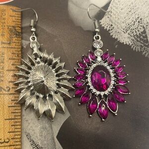 Silver tone metal. Acrylic pink sparkling & clear faceted stone accents. Silver tone ear wires.