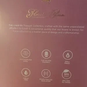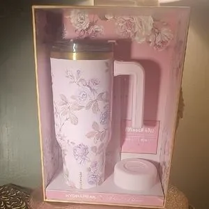 Elegant floral tumbler by Hydrapeak. Comes with a matching lid. Perfect for hot or cold drinks.