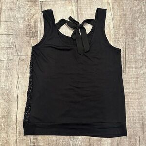 Forever 21 Womens Tank Top Size Small Black Sequin Sleeveless Top Open Tie Back