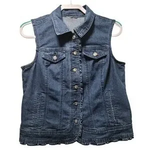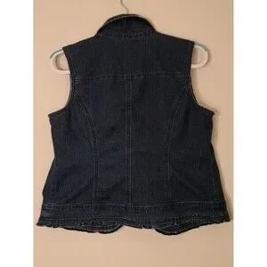 OSO Casuals Womens Sleeveless Denim Jacket Vest M Blue Ruffles Collared Pockets