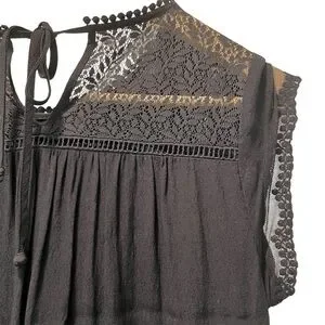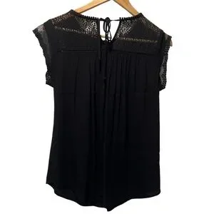 Anthropologie Meadow Rue Black Rayon Blouse Sz S Embellished Eyelet Tie Closure