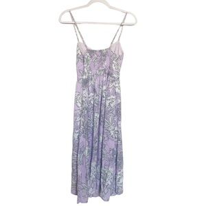 Bardot Ibiza Floral Midi Dress Tie Front Cutout Spring Boho Lavender Purple Sz 4