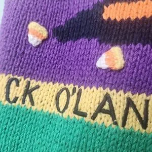 all over print, double sided, Halloween, witchy, witchcore, scarecrow, Fall, jack-o-lantern, pumpkin, black cat, hand knit, hand sewn, chunky, cozy, warm, kitsch, kitschy, unique, kidcore, teachers, fun, statement piece, head turner, vintage, 80s, 90s, Y2K, country