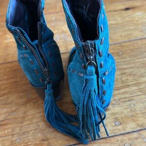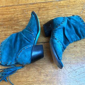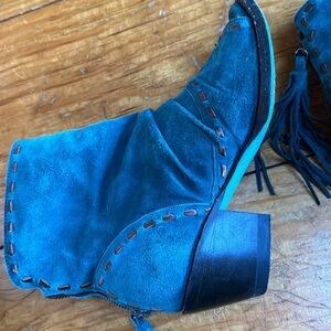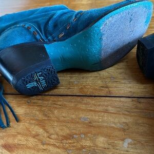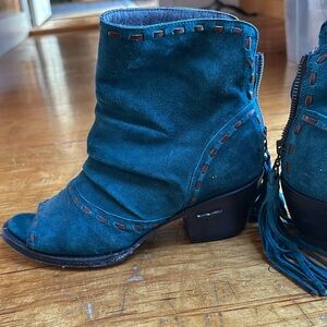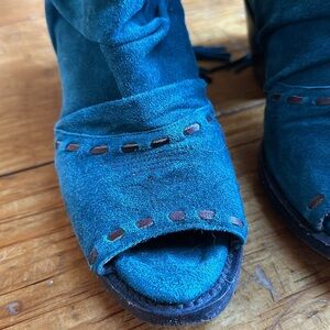 Lane open toe teal Western boots