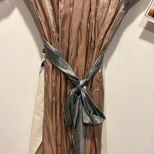 This elegant dress features a beautiful combination of lace and satin, perfect for any special occasion. Beautiful color combinations size Large. NWT and garment bag. The dress comes in a sophisticated gray and blush cream color palette, adding a touch of class to your wardrobe.