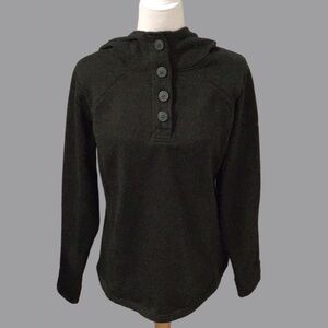COLUMBIA Dark Green & Black Heather Pullover Hoodie Sweater 4 Large Buttons, L