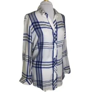 NWOT Hester & Orchard Plaid Button Front Roll Up Tabbed Sleeve Shirt Size M