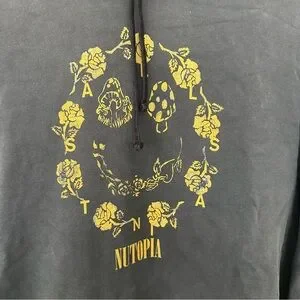 All Saints Nutopia faded black/dark charcoal grey Hoodie with Yellow Graphic