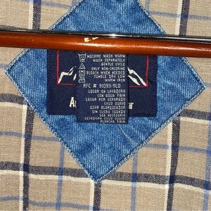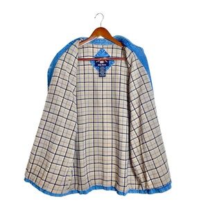 Keep warm & cozy in style with this chic, versatile & classic Faded Glory Vintage 90s Y2K Button Front Utility Chore Barn Flannel Lined Denim Jacket Shacket in solid, neutral medium blue denim wash with contrasting black hardware & a beige tan, black and blue tartan plaid lining. Crafted with a durable, mid-weight & breathable 100% cotton shell & body lining and 100% nylon sleeve lining. Perfect on its own or as a layering piece to keep you comfortable on the farm, or trail. In excellent preowned condition, no stains or tears.