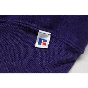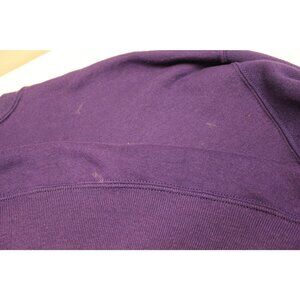 Deep purple crew neck sweatshirt with large front and small back / sleeve print.