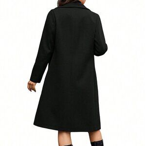 Black Casual Women's Coat Double Breasted Blend Mid-Long Pea Coat