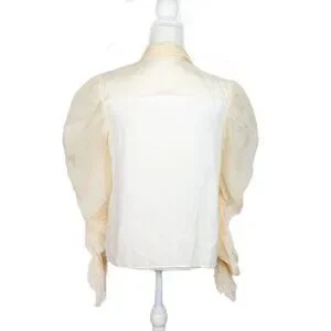Beautiful Victorian Look Tory Burch Cream color Ruffle Embellished Silk Blouse in excellent