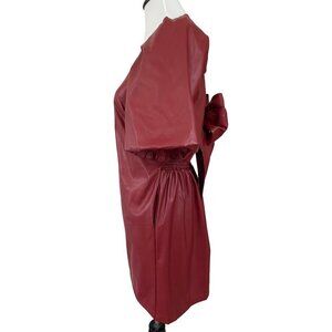 Mare Mare x Anthropologie Dark Red Faux Leather Puff Sleeve Bow Back Dress Medium