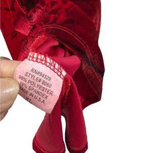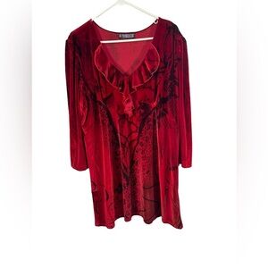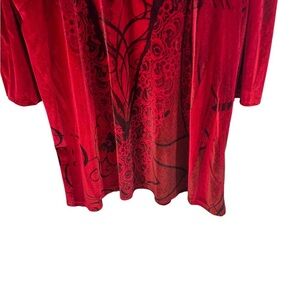 The Pyramid Collections Red Floral Velvet Long Sleeve Dress Tunic Top Size XL