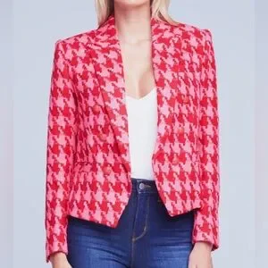 NWT $695 L'AGENCEBrooke Houndstooth Double Breasted Blazer