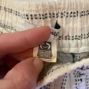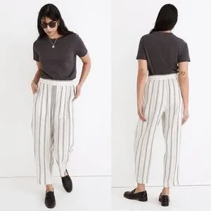 Madewell Lightspun Balloon Drawstring Pull-On Pants, Size Medium, White & Black