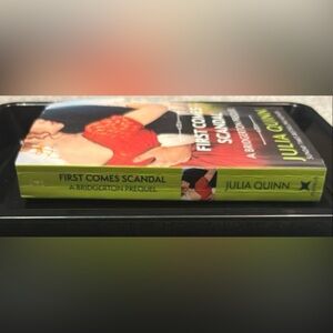 First Comes Scandal: Tells the story of Georgiana Bridgerton, who must choose between a life of spinsterhood or marrying the rogue who has compromised her reputation (slight water damage, nothing major to affect the print)