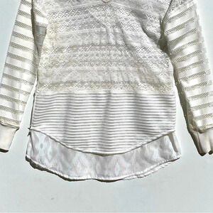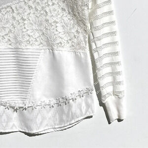 DESIGUAL Women’s Malta Lace Panel Long Sleeve Top White and Metallic size XS
