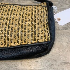 Cute straw vegan leather flap over crossbody bag by Carlos Falchi. NWTs