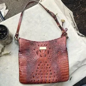 Melbourne Collection Katie Leather Crocodile-Embossed Crossbody Bag by Brahmin