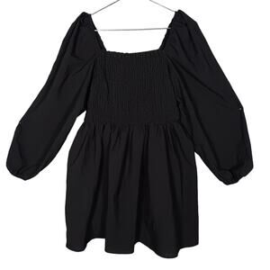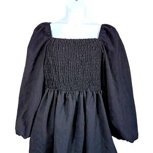 H&M Wednesday Goth Dress Size 16 Shirred Bodice Balloon Sleeves Square Neckline