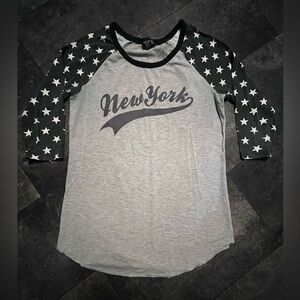 Rue21 Gray and Black Star Sleeve New York Raglan Tee