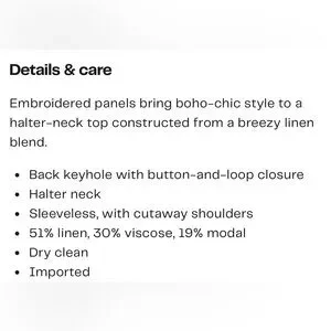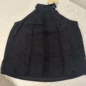 NWT Beautiful black Ramy Brook New York halter neck top. Linen blend. Front is lined, halter neck, sleeveless with cut away shoulders, back button and loop closure. Boho style, light and airy. Approx flat measurements are 18.5” armpit to armpit and 25” total length. Ladies size small.
