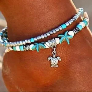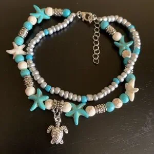 Keywords: Bohemian, boho, anklet, bracelet, beach, vacation, travel, summer, starfish, Aqua, shell, seashell, ocean, sea, tortoise, turtle, sea turtle, nautical jewelry, beach jewelry