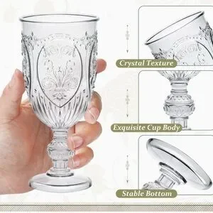 Vintage wine glasses set features a European vintage style and embossed design, comfortable to hold in the hand; Use our cups to sip your favorite drinks with your guests at your party and experience the irresistible vintage beauty, add a touch of elegance to your party and impress your guests