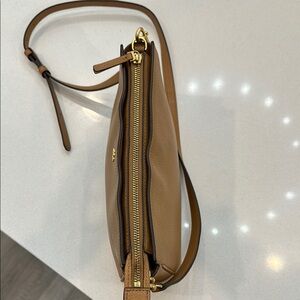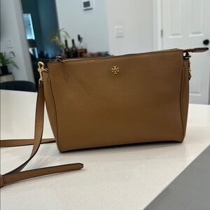 Elevate your style with the Tory Burch Tan Leather Shoulder Bag. Crafted for elegance and functionality, this bag is perfect for any occasion. Gently used but maintained very well. Big enough to fit all essentials, phone, wallet, keys and lip gloss