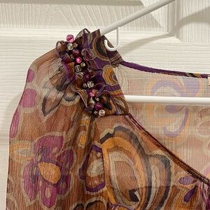 Blumarine Sheer Floral Button Down Blouse