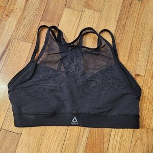 Experience comfort and style with the Reebok Black Mesh Sports Bra. Perfect for workouts or casual wear, this bra offers support and breathability.